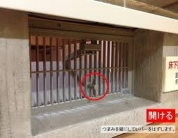 四角い網の通気口は、換気能力は大きいのですが風が勢い良く入ってくるため床下から1階床へ風が入り込み