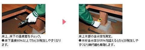 床下の「湿度が80%」、「木材の含水率が25%」を超えたら、要注意です。