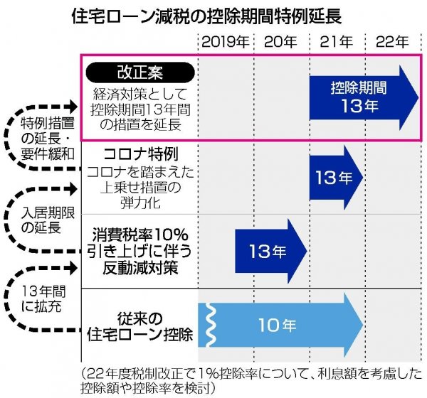 減税の3年延長(13年間減税)の特例措置の期限が延長される旨が盛り込まれました。